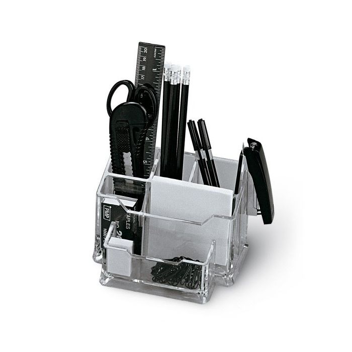 Desk organizer in plexiglass a 5 scomparti, completo di accessori.