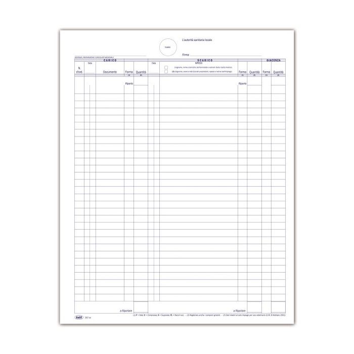 Registro Carico/Scarico stupefacenti - 104 pagine prenumerate - 31x24,5 cm