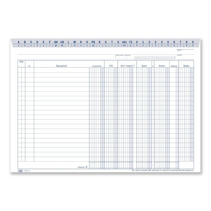 Scheda Dare/Avere/Saldo (in evidenza imponibile e IVA) con naselli A/Z - Scheda da 200 gr. - 21x29,7 cm