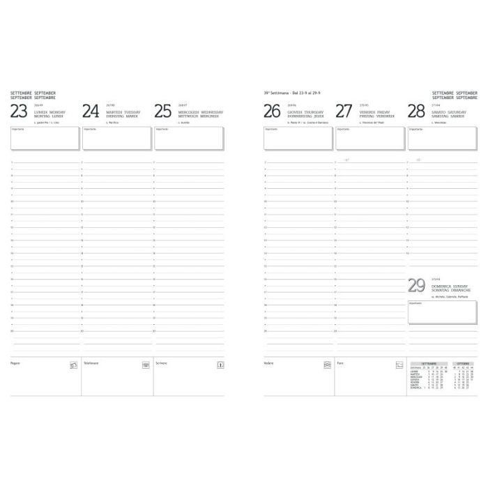 Ricambio agenda settimanale, taglio bianco da pezzi. da pezzi.