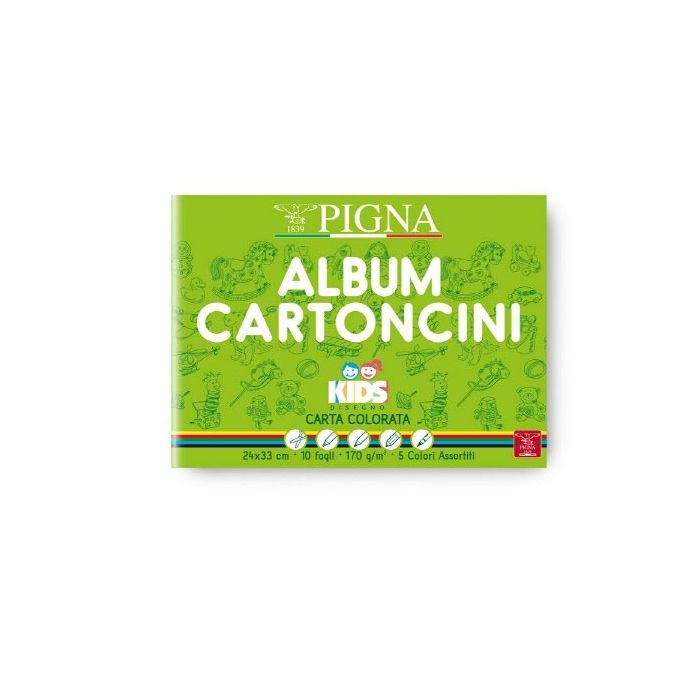 Album cartoncini colorati Pigna Kids - 24x33 cm - 10 fogli - 5 colori - 170 g