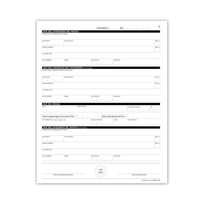 Certificato di rottamazione - Snap out triplice copia autoricalcante - 29,7x21 cm