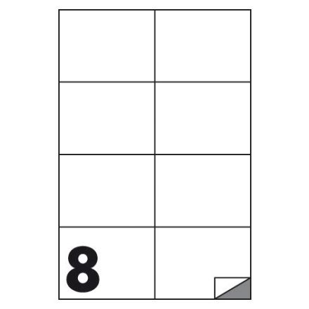 Ideate per completare in modo professionale le vostre spedizioni, per personalizzare cartelline o altri materiale per archiviazione, e per etichettare ogni tipo di prodotto. Etichette in carta di pura cellulosa lisciata in macchina. Grammatura: 70 g/m² ISO 536. Punto di bianco: 98% ISO 2470/1. Stampabilità: inkjet, laser, fotocopie, flexo, offset, serigrafia e scrittura manuale. Colla permanente universale, acrilico a base d'acqua. Ottima resistenza al calore. Buona adesione su cartoni e superfici non-polar (es. PE). Buona adesione anche alle basse temperature -20+100°C. Confezioni da 500 fogli.