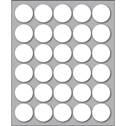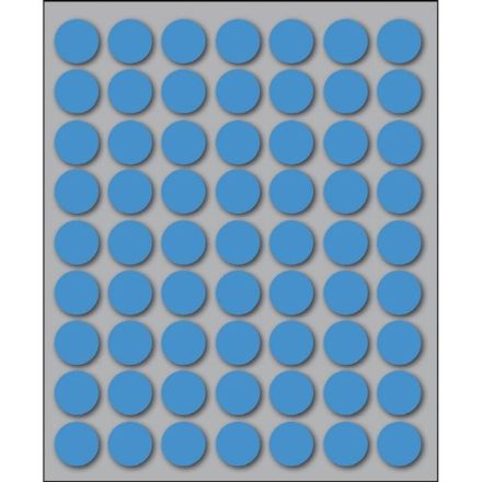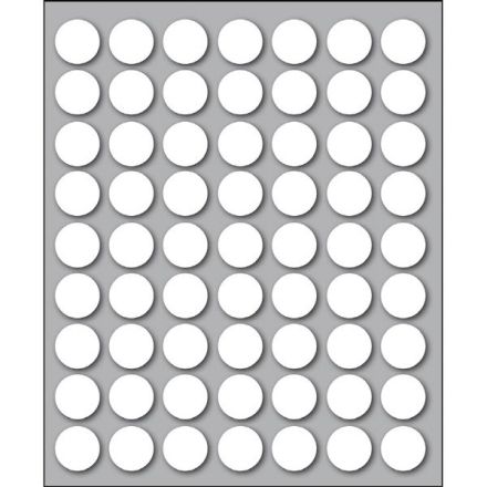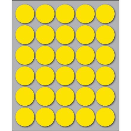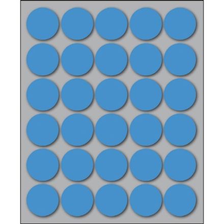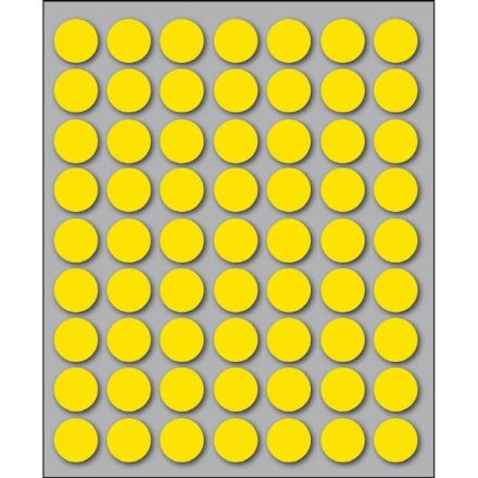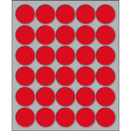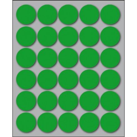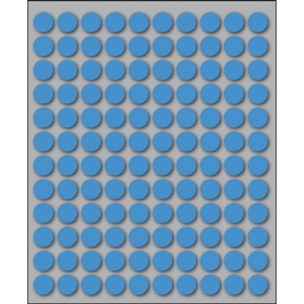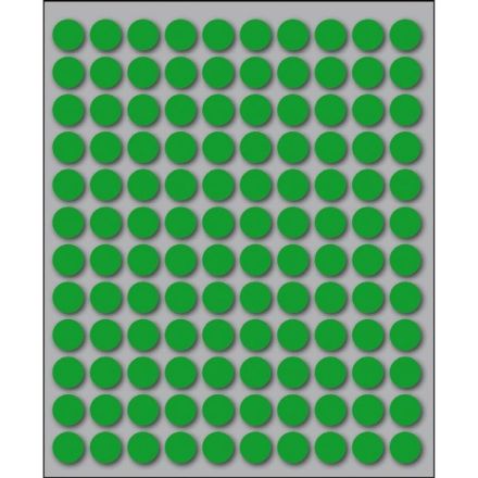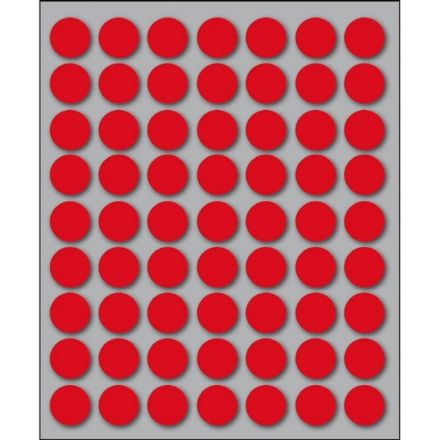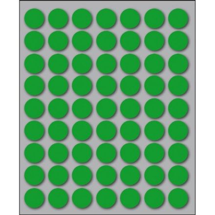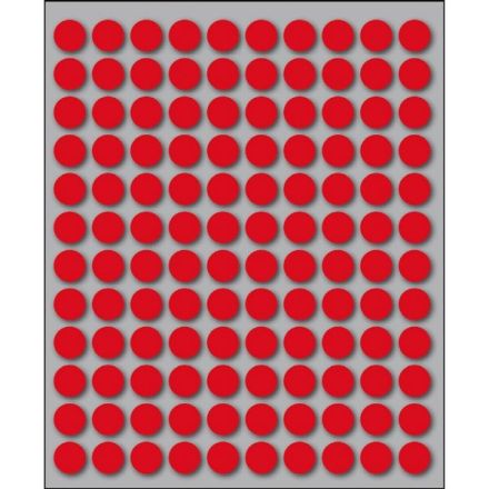 Etichette autoadesive colorate di forma circolare, con collante permanente. Idonee per usi occasionali, per soluzioni a mano e non su stampa. Realizzate in 5 diversi colori (bianco, blu, giallo, rosso, verde) ed in 4 differenti diametri. Garantite 2 anni. Disponibili su fogli formato 152,5x125 mm. Confezioni da 10 fogli.