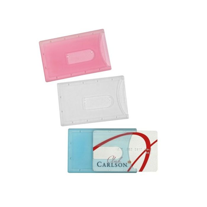 Utile accessorio per custodire carte con banda magnetica. Dotato di apposito foro centrale per facilitare l'estrazione della carta. Realizzato in plastica rigida trasparente nei colori assortiti bianco, rosa e celeste