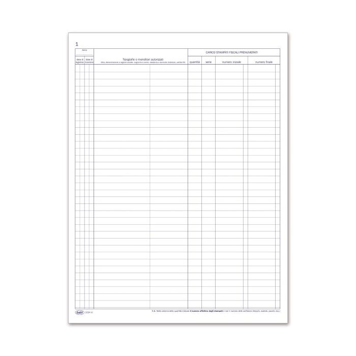 Registro carico fiscali - Carico stampati fiscali prenumerati - 14 pagine - 31x24,5 cm