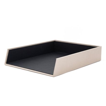 Vaschette porta documenti con fasce antiscivolo in tre posizioni diverse per una maggiore stabilità. Rivestimento con carte pregiate (interno nero esterno nelle varianti blu, rosso e tortora).